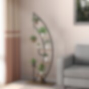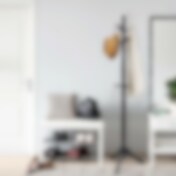 Garderobestativ i metall med 2 trehyller – Rustikk brun/svart