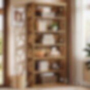 Bokhylle i tre med 6 hyller / bokhylle med seks hyller i industriell stil / oppbevaringshylle i tre med stabil konstruksjon
