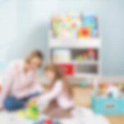 Barnemøbel med bokhylle og skuffer – barnebokhylle / lekeoppbevaring - hvit