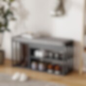 Skobenk med sete grå / skohylle med polstret sete / hallbenk med 3 nivåer for sko