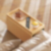 Bambus armlenebrett for sofa / sofabrett for drikke og snacks / rullbart brett med anti-skli