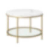 Rundt salongbord i marmorlook med glassplate under - Hvit/Gull