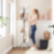 Veggmontert hattehylle med kroker og oppbevaringsrom