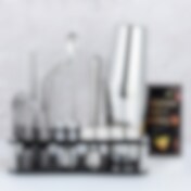 25-delers boston shakersett i rustfritt stål med doble målebeger og akrylstativ