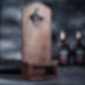 Flaskeåpner med kapselsamler i støpejern og tre