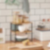 Hylle til kjøkkenbenk - 2-pakning med stabelbare og justerbare hyller i tre og metall