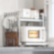 Uttrekkbar Mikrobølgehylle med Hjul – Justerbar Kjøkkenhylle i Stål