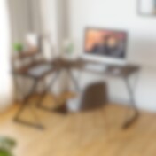 L-formet skrivebord med skjermhylle - Svart/Brun