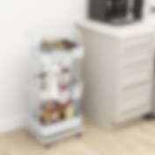 Oppbevaringsvogn på hjul med 3 kurver og tilbehør – Hvit