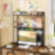 Skrivebordshylle / skjermhylle / bokhylle til skrivebord i brun/svart