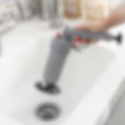Trykkluftpistol for rengjøring av avløp med universaladaptere og kjemikaliefri rengjøring
