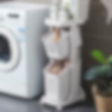 Tralle på hjul med 3 skittentøyskurver og praktisk hylle