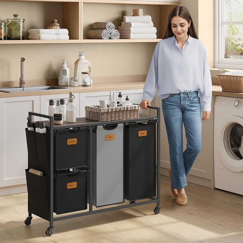 Stor skittentøyskurv på hjul med 4 avtakbare poser