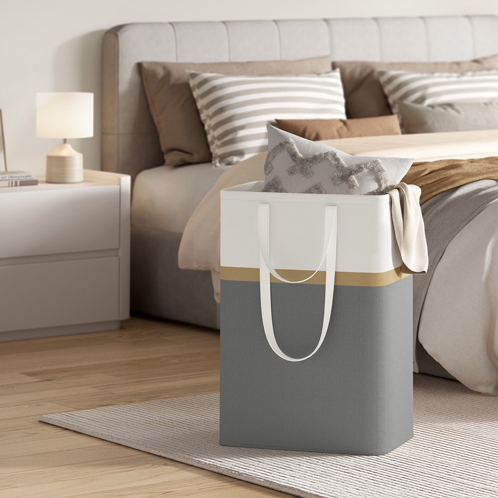Klesvaskkurv med 2 rom og hylle - Hvit/grå