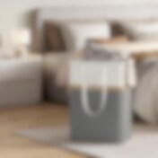 Klesvaskkurv i bambus med lokk 150L - Grå