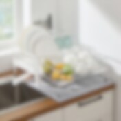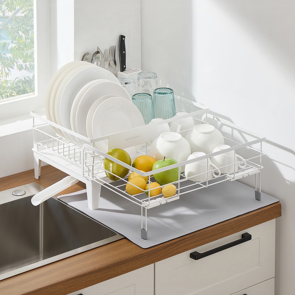 Oppvaskstativ med avrenningsbrett og bestikkholder