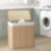 Stor skittentøyskurv i bambus med lokk og tre rom – 150 liter
