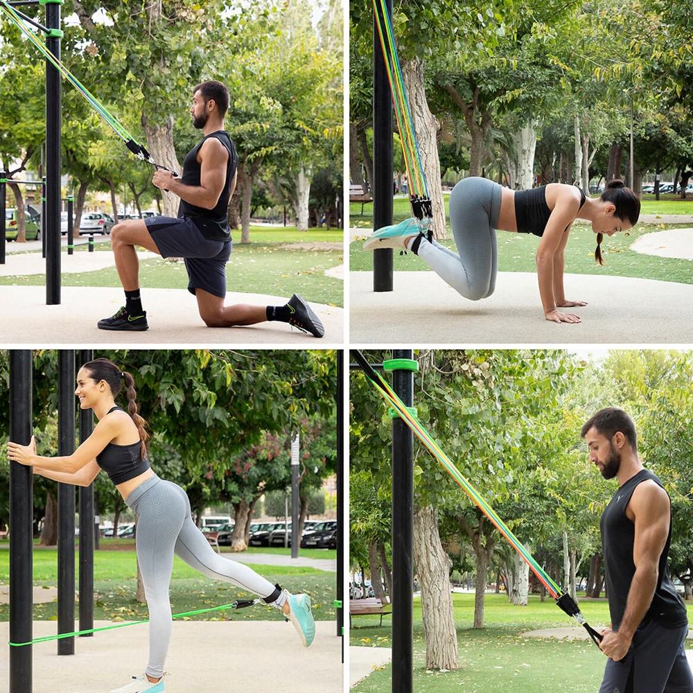 5 treningsstrikker med håndtak, døranker og treningsguide