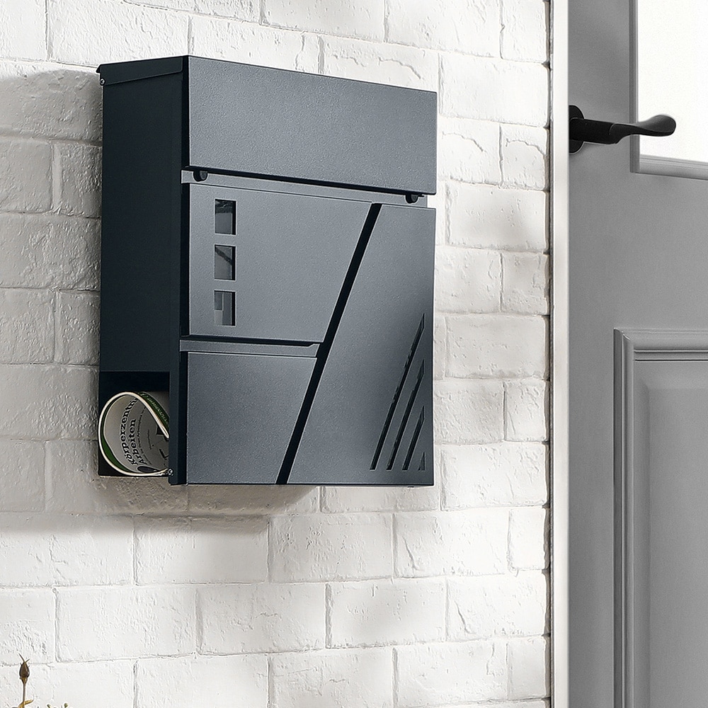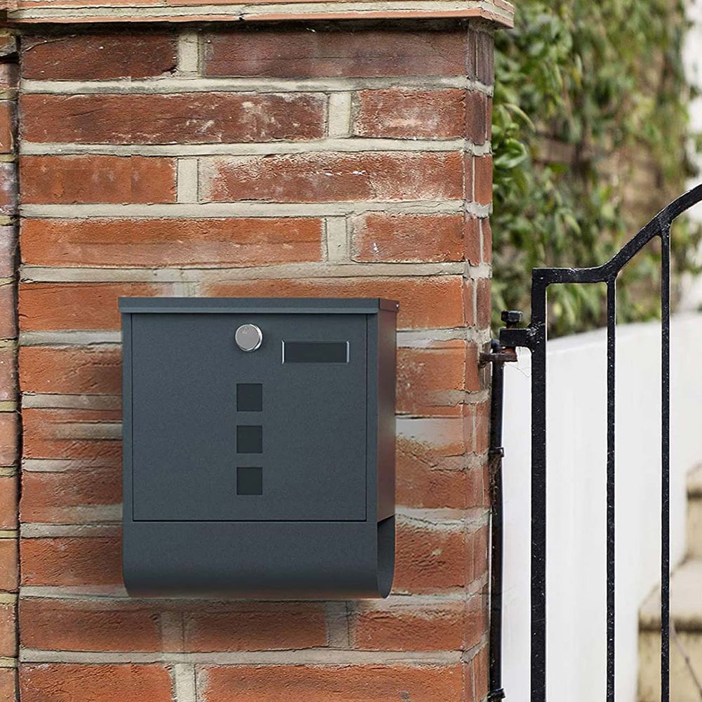 Veggmontert postkasse med lås og navneskilt - Grå