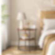 Rundt sidebord med 2 hyller - rustikk brun/svart