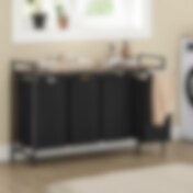 Skittentøyskurv med 3 uttrekkbare rom og trehylle – Svart