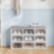 Oppbevaringsbenk med polstret sete og 9 rom - Hvit/grå