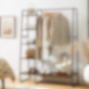 Klesstativ med skohylle og 5 hyller - rustikk brun / svart