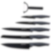 Knivsett med 5 kniver og en skreller i rustfritt stål