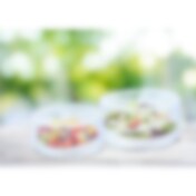 Matbeholder i plast med tettsittende lokk og integrert bestikk