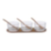 Serveringsbrett med 3 glassboller og treskjeer - komplett sett for stilfull borddekking
