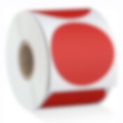 Etikettrull med runde røde etiketter 50 mm - 600 etiketter per rull