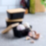 Oppbevaringsboks 3-pakning med bambuslokk og skuffer i slitesterk plast