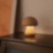 Bordlampe i bøk med justerbar lysstyrke og soppdesign