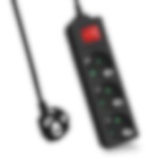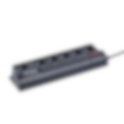 Strømskinne med 5 kontakter, bryter og overspenningsvern - 4,5 m, svart