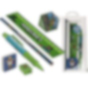 Minecraft skrivesett med penn, blyant, linjal, viskelær og blyantspisser