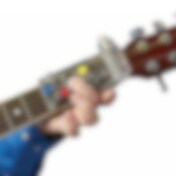 Læringshjelpemiddel for gitar med fargede knapper