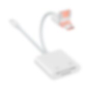 En adapter som støtter Apple Lightning og gjør at enheten blir kompatibel med SD-minnekort.