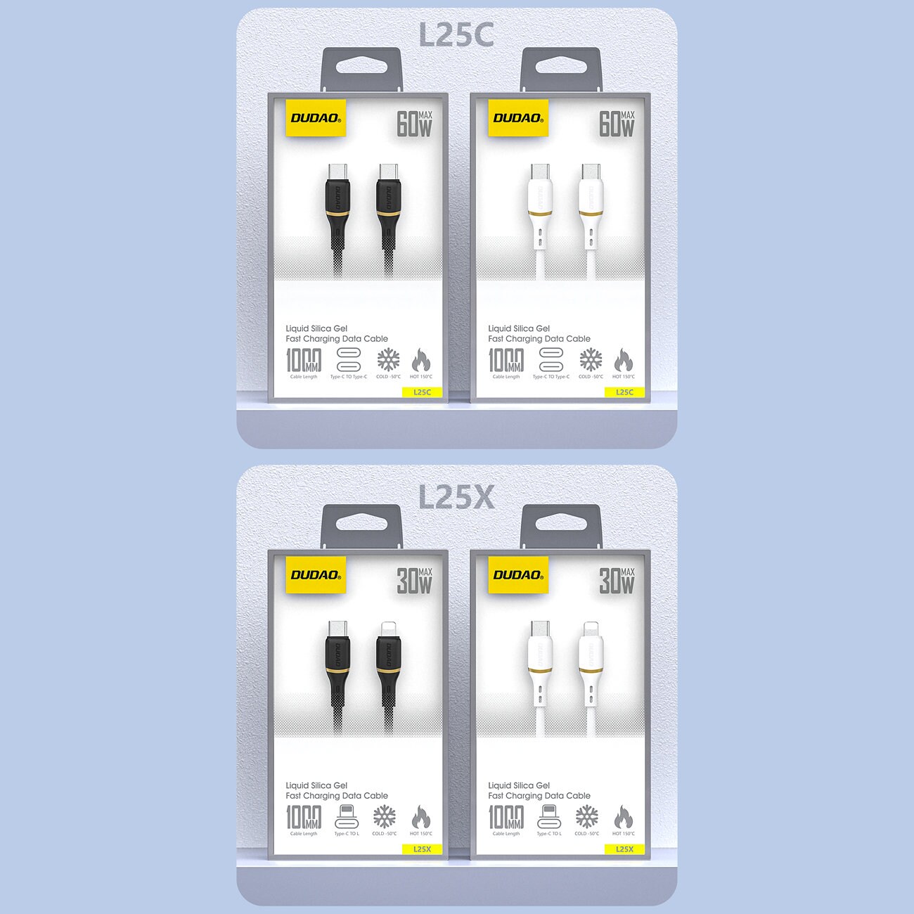 Dudao L25C USB-C - USB-C silikonkabel 60W 1m - Hvit
