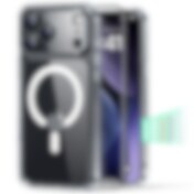 ESR Classic Hybrid Kickstand MagSafe-etui + herdet glass til iPhone 16 Pro Max - Klar/svart ramme
