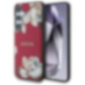Guess MagSafe-etui med kornet, trykt blomstermønster for Samsung Galaxy S25 fuchsia