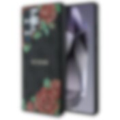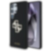 Guess Lær 4G-blomster i metall Classic Logo MagSafe-etui for Samsung Galaxy S25 Ultra - Svart