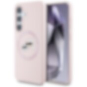 Karl Lagerfeld MagSafe-etui i silikon med doble hoder og sirkel Samsung Galaxy S25 rosa