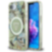Guess IML MagSafe iPhone 16e-etui i metall med glitterblomster og trekant iPhone - grønt
