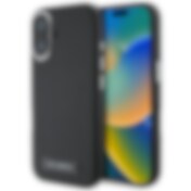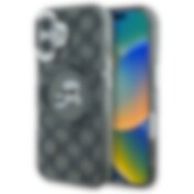 Guess MagSafe-etui med kornet gullring for iPhone 16 Plus - svart