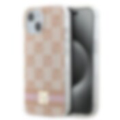 DKNY IML MagSafe-etui med rutete ensfarget mønster og trykte striper til iPhone 15 Pro - rosa
