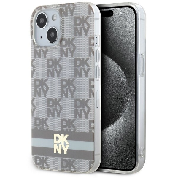 DKNY IML MagSafe-etui med rutete og striper til iPhone 15/14 Plus - Beige