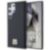 DKNY MagSafe-etui i lærmønster med metallogo for Samsung Galaxy S24 Ultra - svart