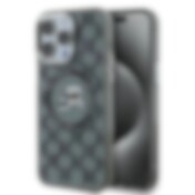 DKNY IML MagSafe-etui med rutete ensfarget mønster og trykte striper til iPhone 15 Pro - Svart