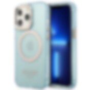 Guess Gold Outline gjennomsiktig MagSafe-etui for iPhone 13 Pro / iPhone 13 - blå