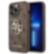 Guess 4G 4G-etui med stor metallogo for iPhone 14 Pro - Brun